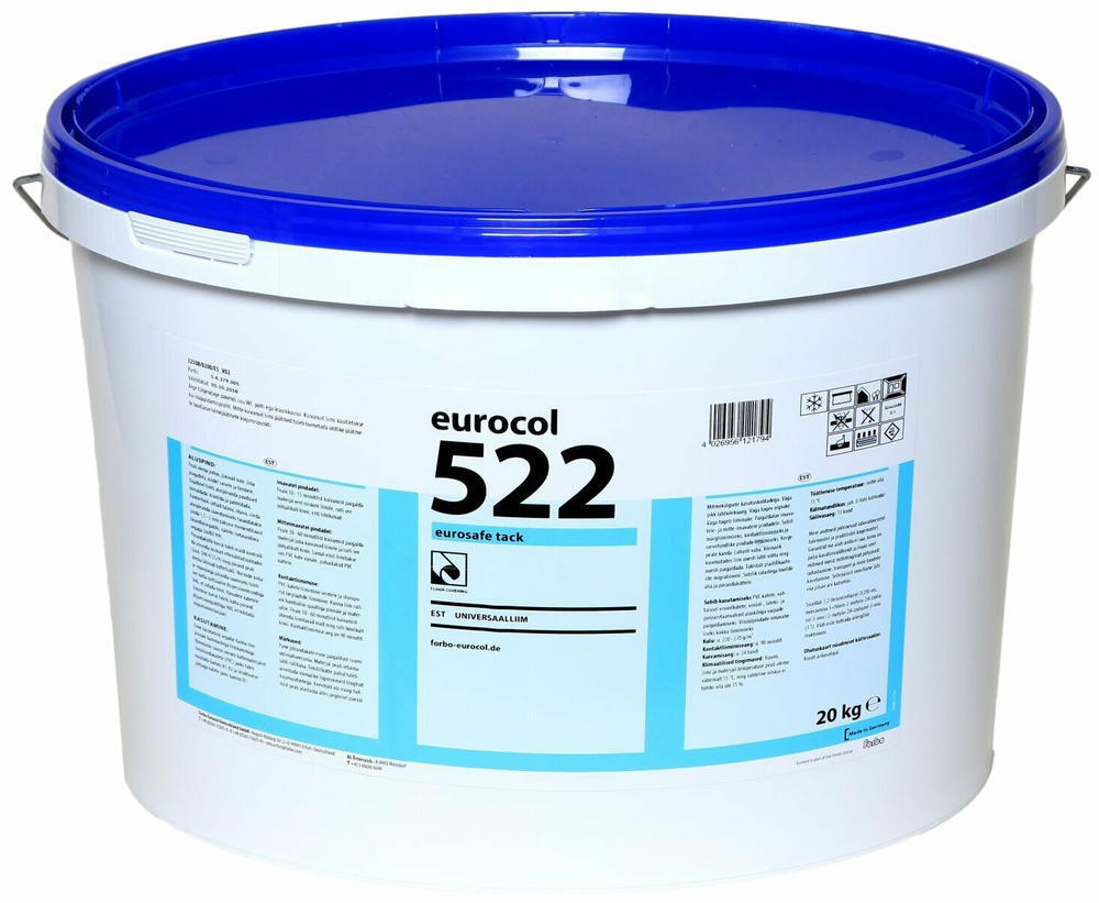 Universal adhesive 522 Eurosafe Star Tack belongs to the category of universal compounds suitable for working with different types of floor coverings, absorbent and non-absorbent bases. The list of materials acceptable for work includes: PVC roll and tile products, including wall/ceiling panels, foamed vinyl, some types of linoleum. It is characterized by ease of use, short drying time, and the absence of solvents in the composition. Adhesive 522 has high adhesive capacity, provides for one-sided installation. Advantages of the universal adhesive Eurocol 522 Eurosafe Star Tack