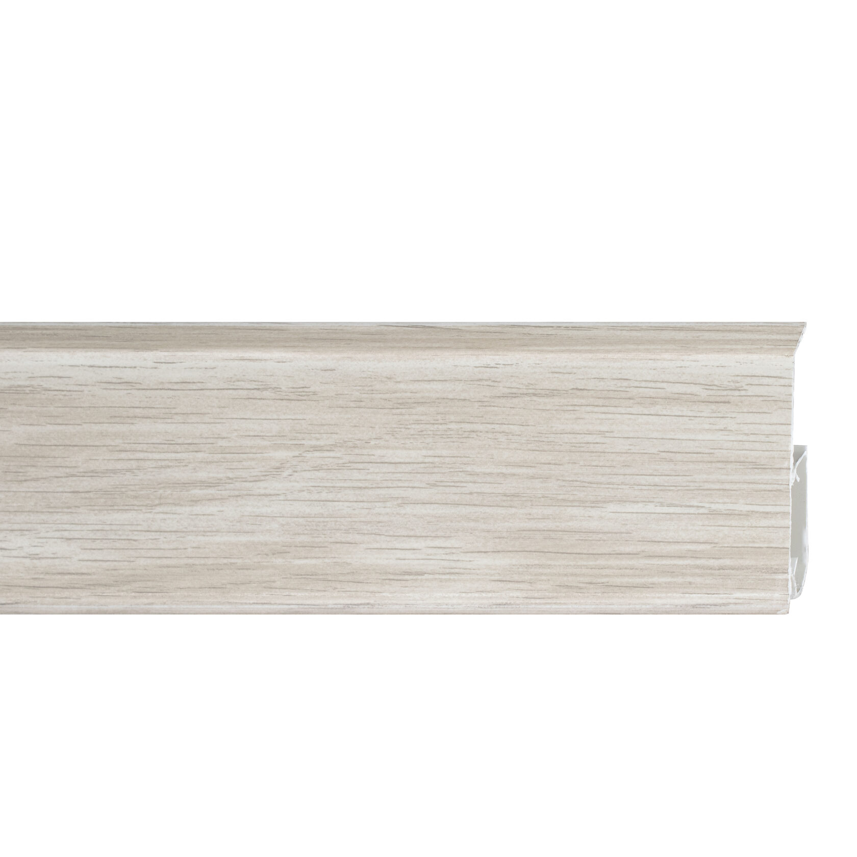 The Tera 72 mm plastic skirting board is a stylish and functional design solution to complete the interior of any room. A sophisticated high profile with sharp edges, with a central removable panel and cable channel, is designed for rooms with laminate, parquet, linoleum and carpet. Installation or dismantling is simple and without additional tools. Due to the simple removal of the upper part of the skirting board, there is no need to completely dismantle it when painting the walls or wallpapering. The product is additionally coated with a special varnish, due to which its surface becomes uniform, which makes it possible to match the color of the profile to the tone of the laminate, and also additionally protects the fittings from various types of mechanical damage and the harmful effects of UV rays. The elastic material of the skirting board fits perfectly even to uneven walls and floors. Finish your renovation beautifully!